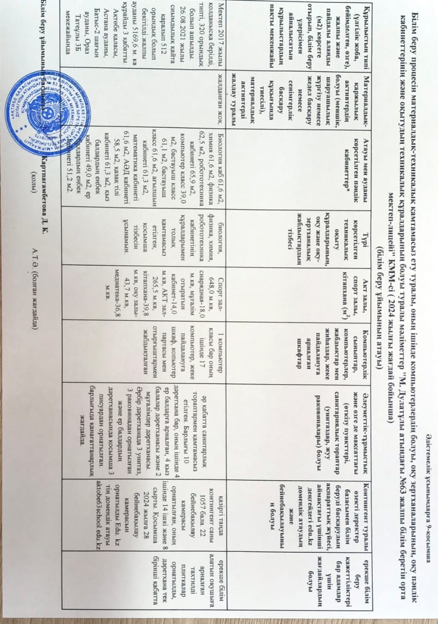 | Пайдалы оқу алаңы, материалдық-техникалық базасының болуы туралы мәліметтер |